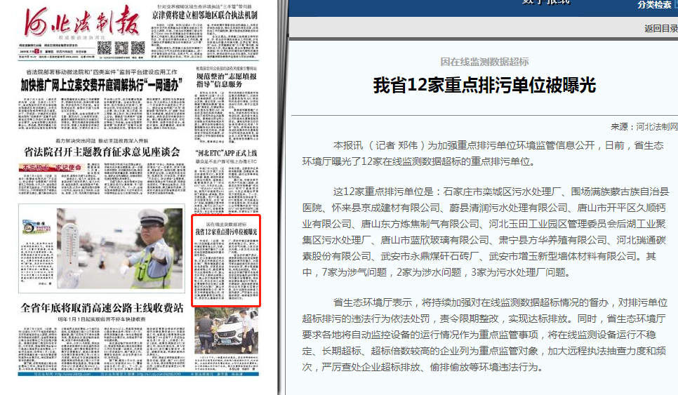 曝光了12家在线监测数据超标的重点排污单位。