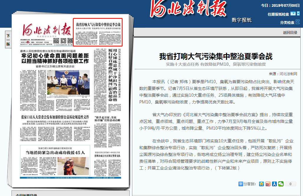 本报讯 (记者 郑伟)夏季是PM10、臭氧为首要污染物占比突出、影响优良天数的重要季节。记者7月5日从杏彩(中国)官方网站