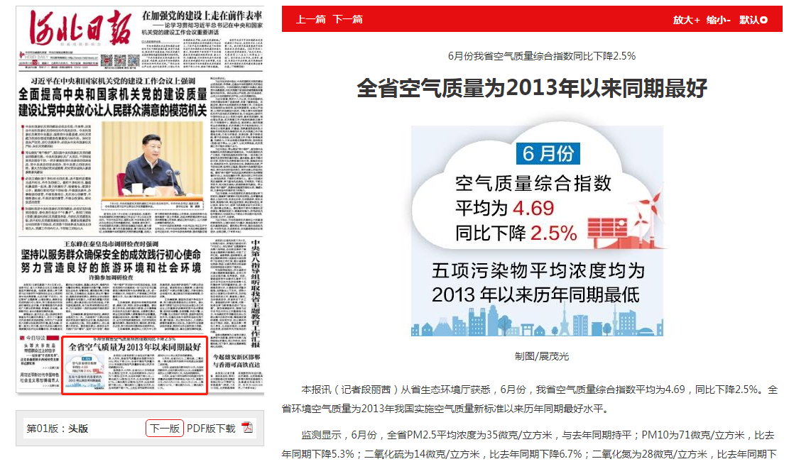 本报讯(记者段丽茜)从杏彩(中国)官方网站 获悉,6月份,我省空气质量综合指数平均为4.69,同比下降2.5%。全省环境空气质量为2013年我国实施空气质量新标准以来历年同期最好水平。