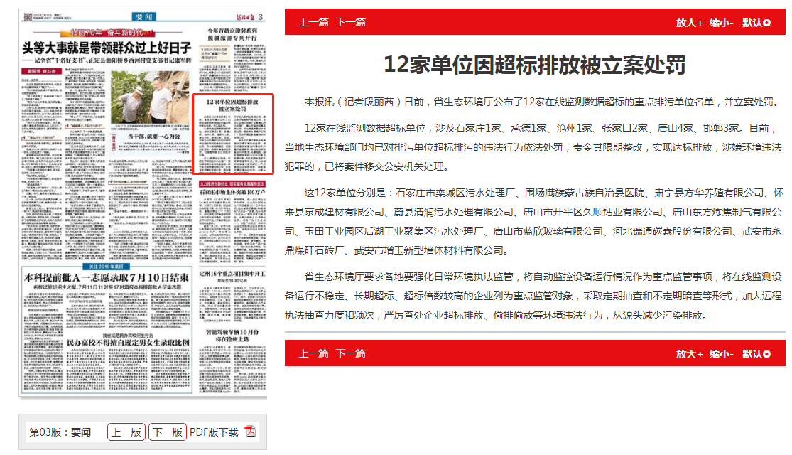 12家在线监测数据超标单位,涉及石家庄1家、承德1家、沧州1家、张家口2家、唐山4家、邯郸3家。目前,当地杏彩门均已对排污单位超标排污的违法行为依法处罚,责令其限期整改,实现达标排放,涉嫌环境违法犯罪的,已将案件移交公安机关处理。