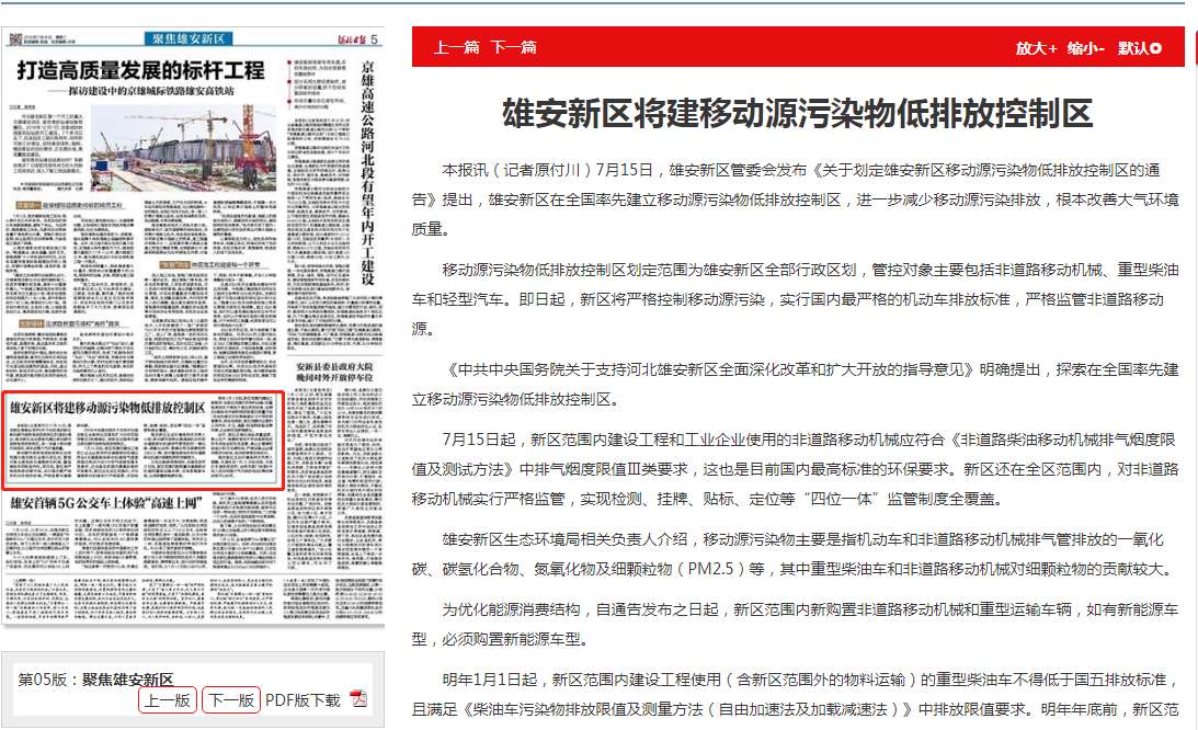 河北日报:雄安新区将建移动源污染物低排放控制区