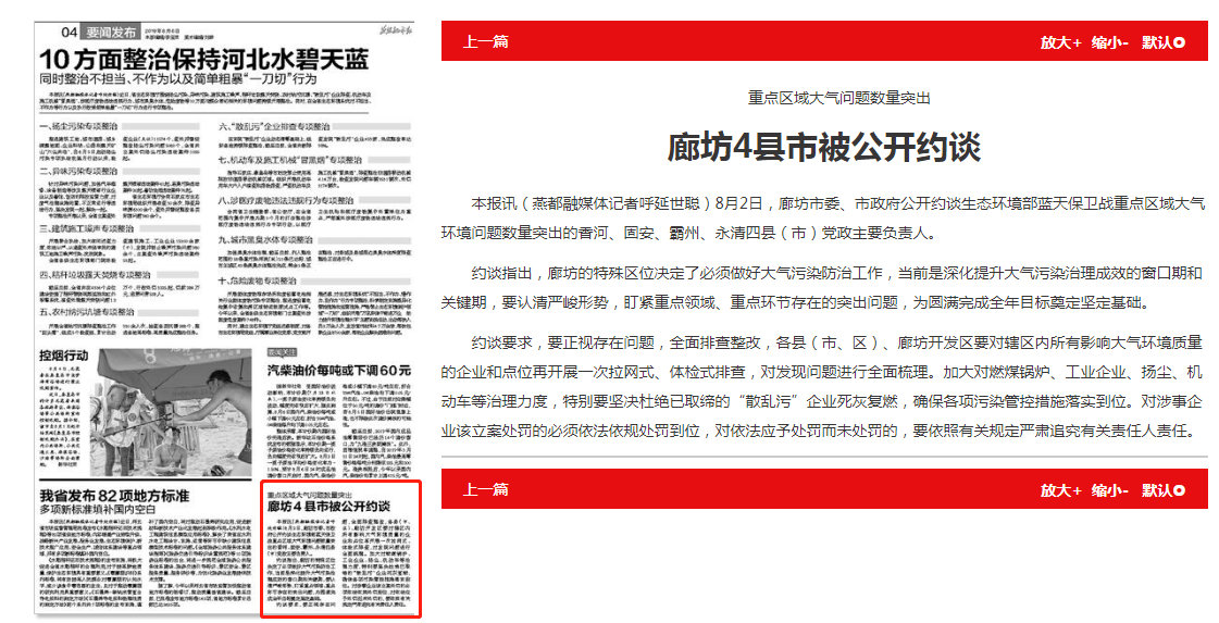 约谈指出,廊坊的特殊区位决定了必须做好大气污染防治工作,当前是深化提升大气污染治理成效的窗口期和关键期,要认清严峻形势,盯紧重点领域、重点环节存在的突出问题,为圆满完成全年目标奠定坚定基础。
