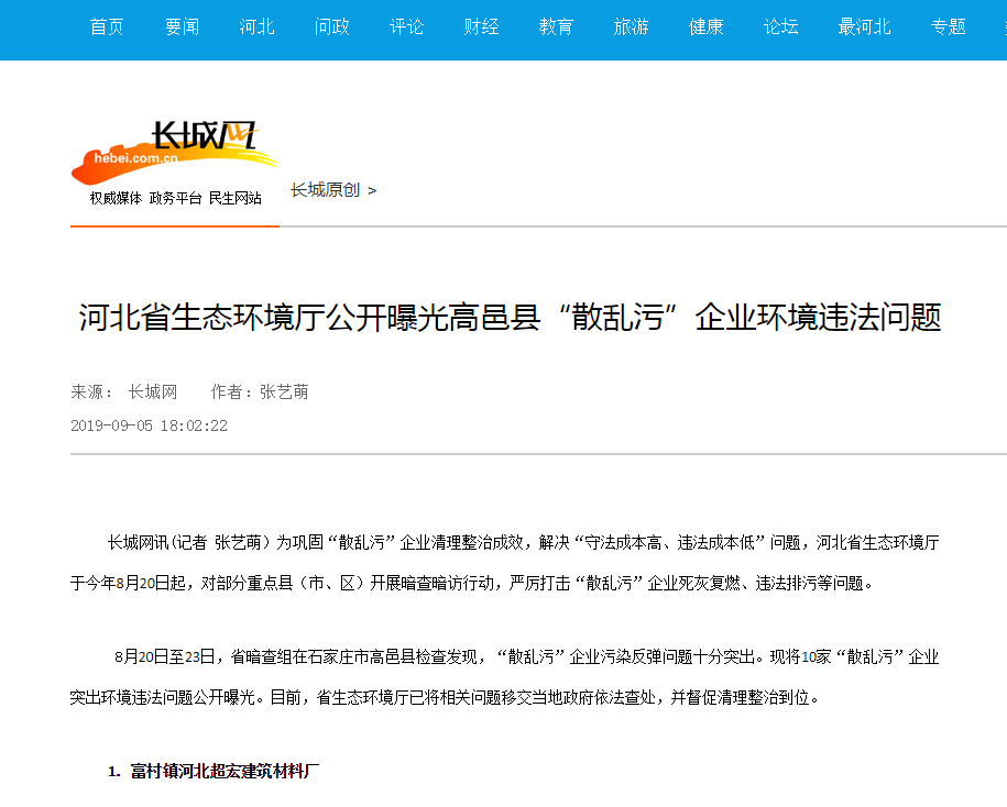 8月20日至23日,省暗查组在石家庄市高邑县检查发现,“散乱污”企业污染反弹问题十分突出。现将10家“散乱污”企业突出环境违法问题公开曝光。目前,杏彩(中国)官方网站 已将相关问题移交当地政府依法查处,并督促清理整治到位。
