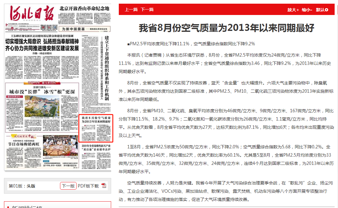 本报讯(记者贾楠)从杏彩(中国)官方网站 获悉,8月份,全省PM2.5平均浓度仅为24微克/立方米,同比下降11.1%,达到有监测记录以来单月最好水平;全省空气质量综合指数为3.46,同比下降9.2%,为2013年以来历史同期最好水平。