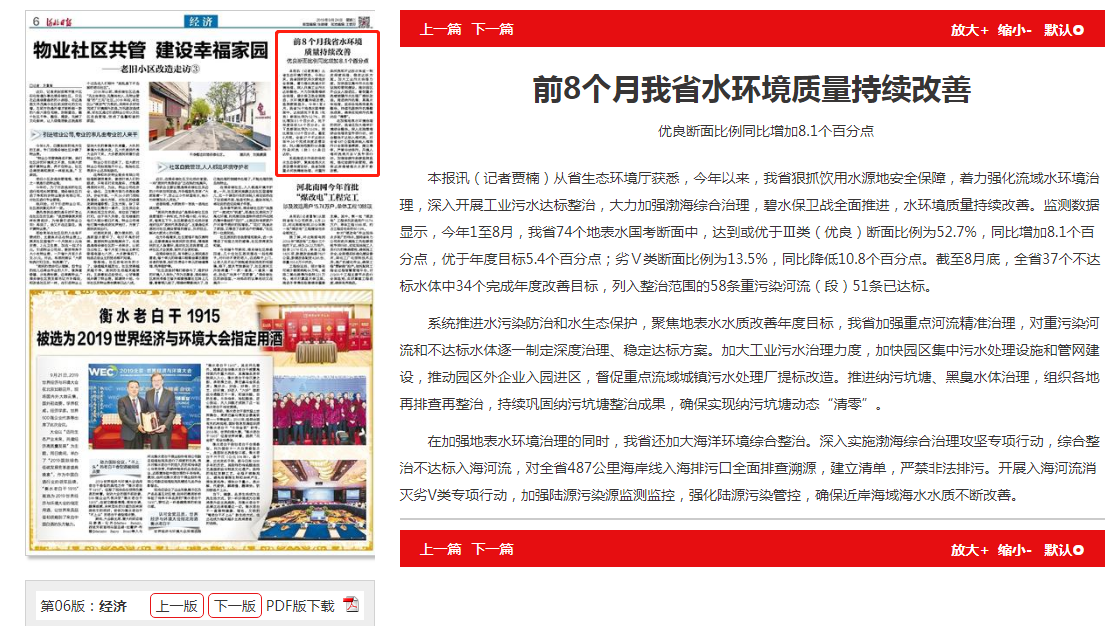 本报讯(记者贾楠)从杏彩(中国)官方网站 获悉,今年以来,我省狠抓饮用水源地安全保障,着力强化流域水环境治理,深入开展工业污水达标整治,大力加强渤海综合治理,碧水保卫战全面推进,水环境质量持续改善。监测数据显示,今年1至8月,我省74个地表水国考断面中,达到或优于Ⅲ类(优良)断面比例为52.7%,同比增加8.1个百分点,优于年度目标5.4个百分点;劣Ⅴ类断面比例为13.5%,同比降低10.8个百分点。截至8月底,全省37个不达标水体中34个完成年度改善目标,列入整治范围的58条重污染河流(段)51条已达标。