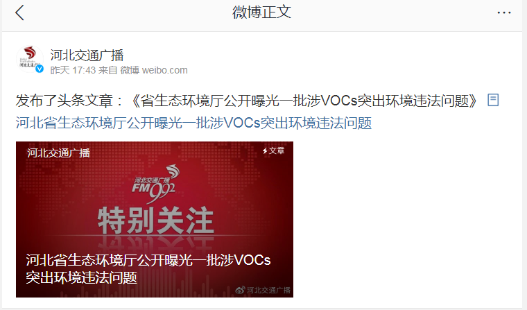 河北交通广播:杏彩(中国)官方网站 公开曝光一批涉VOCs突出环境违法问题