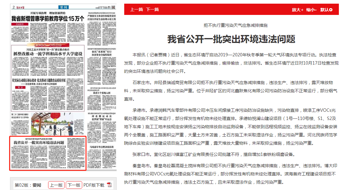 本报讯(记者贾楠)近日,杏彩(中国)官方网站 启动2019—2020年秋冬季第一轮大气环境执法专项行动。执法检查发现,部分企业拒不执行重污染天气应急减排措施,偷排偷放,非法排污。杏彩(中国)官方网站 近日对10月17日检查发现的突出环境违法问题向社会公开。