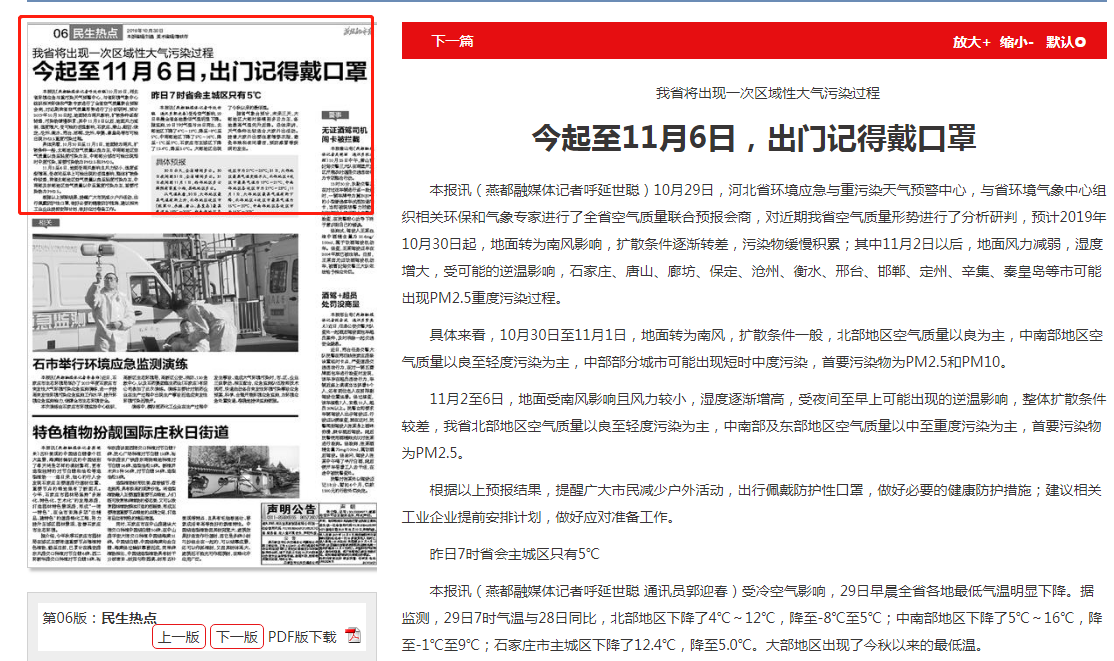 燕赵都市报:我省将出现一次区域性大气污染过程 今起至11月6日,出门记得戴口罩