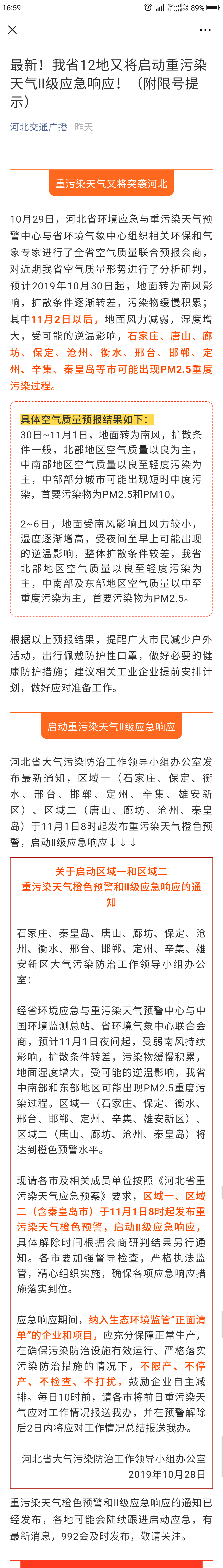 河北交通广播: 最新!我省12地又将启动重污染天气Ⅱ级应急响应!