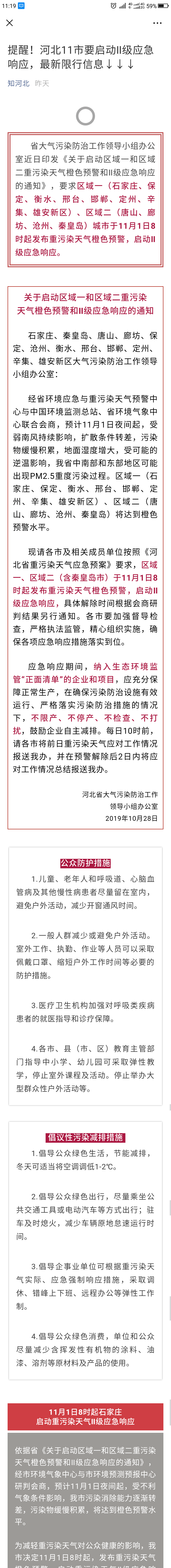 知河北:提醒!河北11市要启动Ⅱ级应急响应,最新限行信息↓↓↓