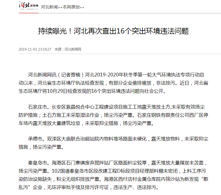 河北新闻网:持续曝光!河北再次查出16个突出环境违法问题