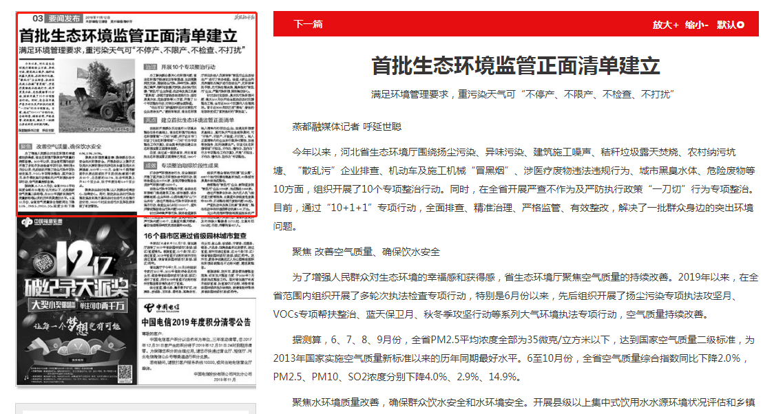目前,经过逐一现场核实,河北省首批生态环境监管正面清单已形成,1640个纳入清单内的项目(企业),在满足环境要求基础上,重污染天气应急减排期间,可“不停产、不限产、不检查、不打扰”。纳入正面清单内的企业实行差异化管控,加强帮扶服务,优先保障生产。印发《生态环境领域“不担当、不作为、慢作为、乱作为”行为专项整治工作方案》,开展“不担当、不作为、慢作为、乱作为”专项整治。