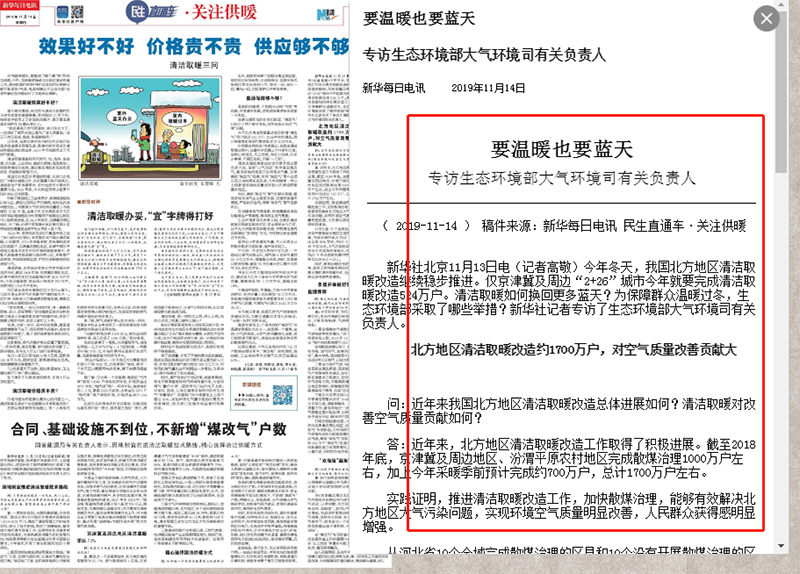 ( 2019-11-14 ) 稿件来源:新华每日电讯 民生直通车·关注供暖