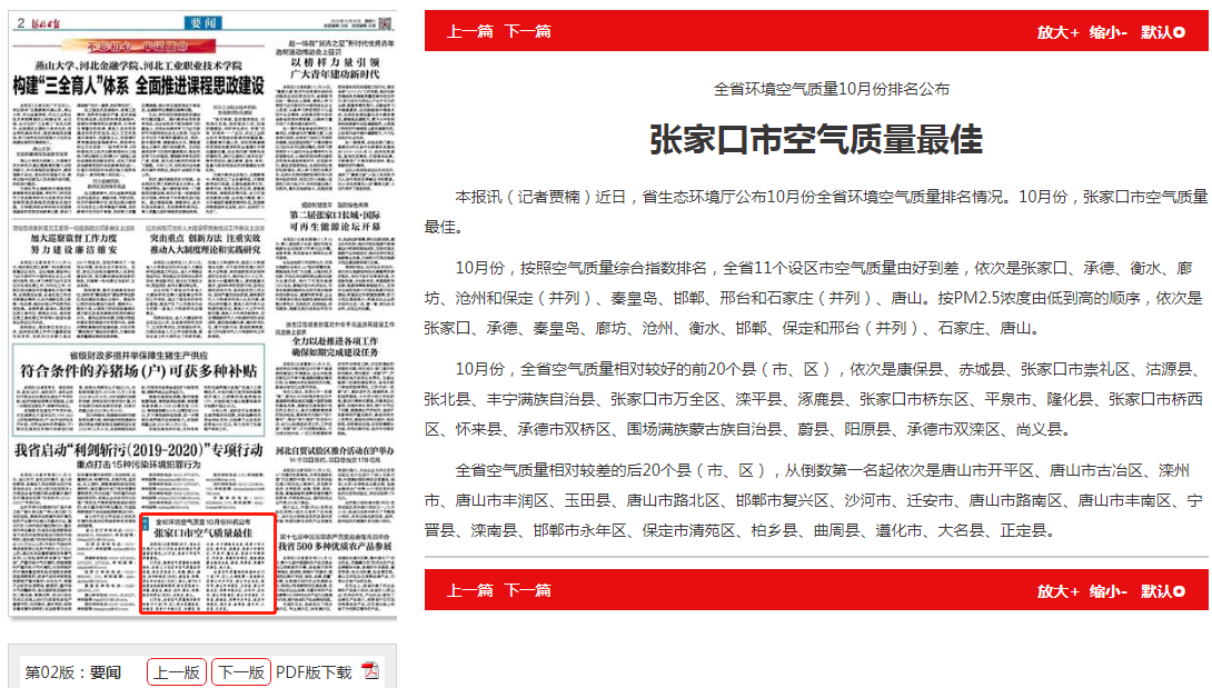 本报讯(记者贾楠)近日,杏彩(中国)官方网站 公布10月份全省环境空气质量排名情况。10月份,张家口市空气质量最佳。