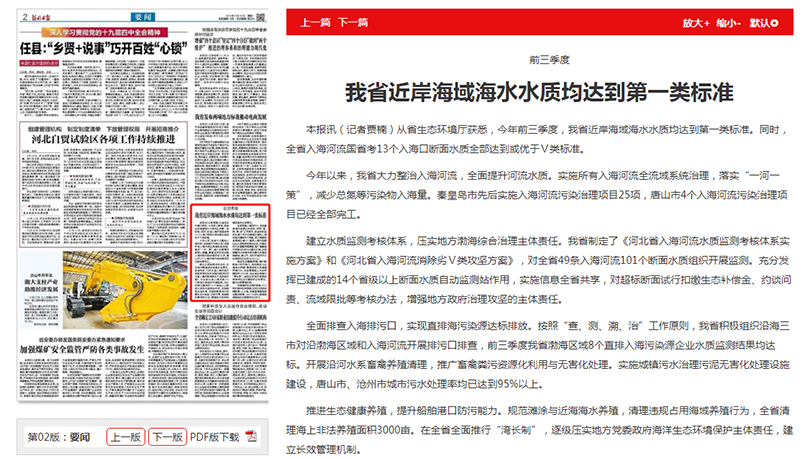 河北日报:前三季度 我省近岸海域海水水质均达到第一类标准