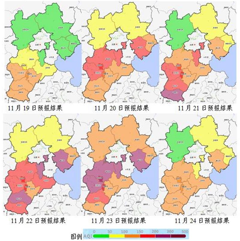 其中,11月21~26日,受小风、高湿、逆温影响,河北省中南部地区扩散条件不利,污染积累,可能出现中至重度污染过程,24日有东北风影响我省,但冷空气强度较弱,对中南部地区影响时间略短,污染形势不能完全改善。具体预报结果如下: