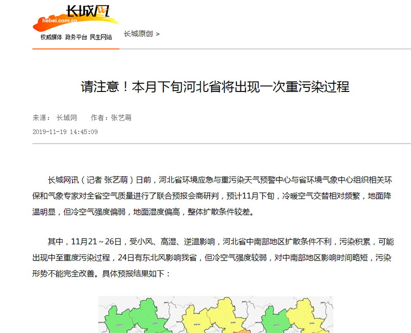 长城网:请注意!本月下旬河北省将出现一次重污染过程