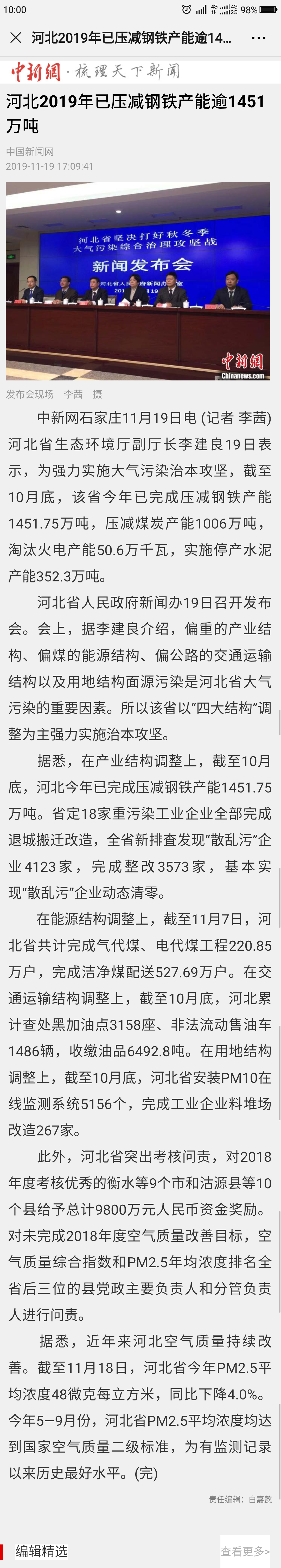 中国新闻网:河北2019年已压减钢铁产能逾1451万吨