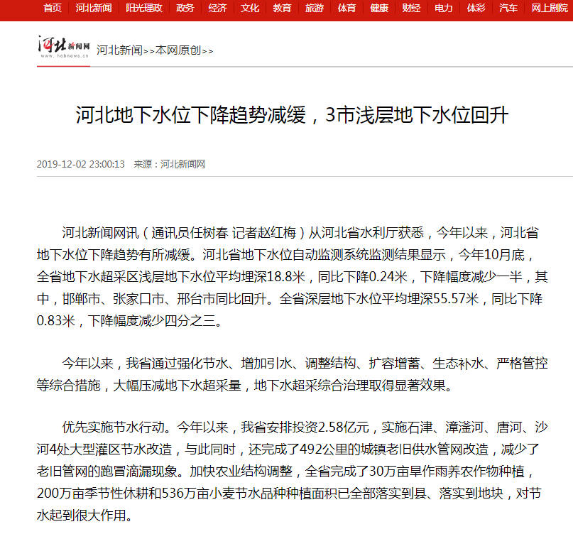 今年以来,我省通过强化节水、增加引水、调整结构、扩容增蓄、生态补水、严格管控等综合措施,大幅压减地下水超采量,地下水超采综合治理取得显著效果。