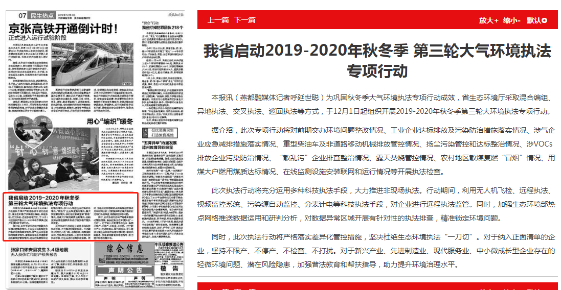 本报讯(燕都融媒体记者呼延世聪)为巩固秋冬季大气环境执法专项行动成效,杏彩(中国)官方网站 采取混合编组、异地执法、交叉执法、巡回执法等方式,于12月1日起组织开展2019-2020年秋冬季第三轮大环境执法专项行动。