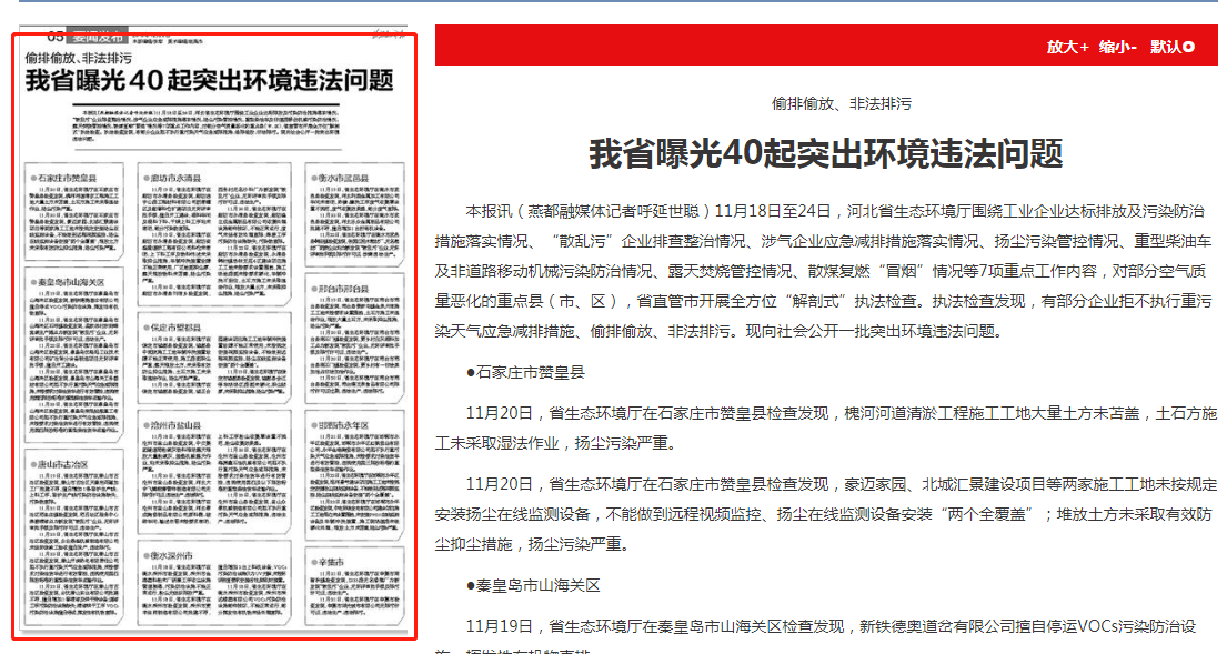 本报讯(燕都融媒体记者呼延世聪)11月18日至24日,杏彩(中国)官方网站 围绕工业企业达标排放及污染防治措施落实情况、“散乱污”企业排查整治情况、涉气企业应急减排措施落实情况、扬尘污染管控情况、重型柴油车及非道路移动机械污染防治情况、露天焚烧管控情况、散煤复燃“冒烟”情况等7项重点工作内容,对部分空气质量恶化的重点县(市、区),省直管市开展全方位“解剖式”执法检查。执法检查发现,有部分企业拒不执行重污染天气应急减排措施、偷排偷放、非法排污。现向社会公开一批突出环境违法问题。