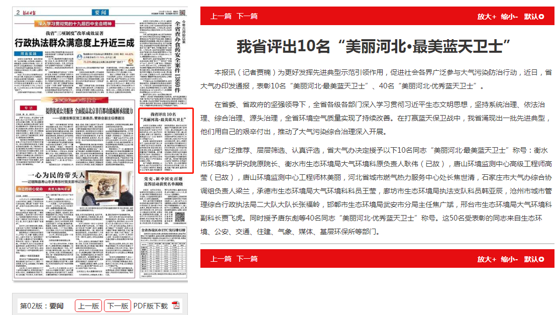 河北日报:我省评出10名“美丽河北·最美蓝天卫士” 来源:省生态环境宣传教育中心 时间:2019-12-11