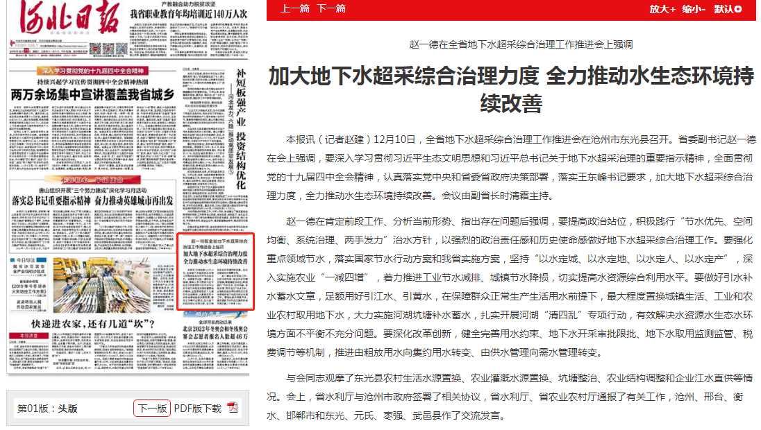 河北日报:加大地下水超采综合治理力度 全力推动水生态环境持续改善