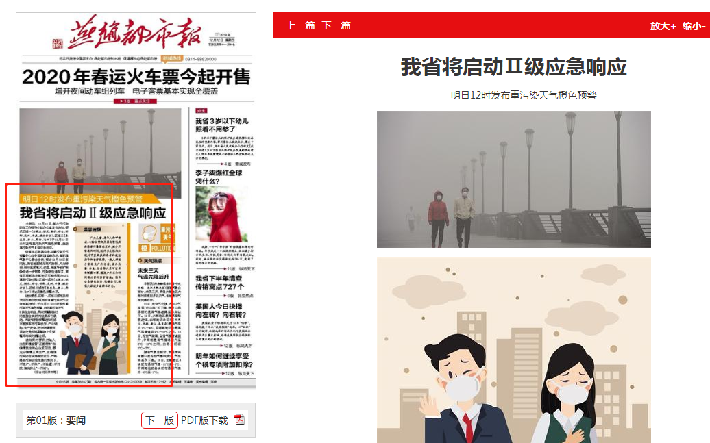 本报讯 12月11日,省大气污染防治工作领导小组办公室发布通知,要求区域一(石家庄、保定、衡水、邢台、邯郸、定州、辛集、雄安新区)、区域二(秦皇岛、唐山、廊坊、沧州)于12月13日12时发布重污染天气橙色预警,启动重污染天气Ⅱ级应急响应。