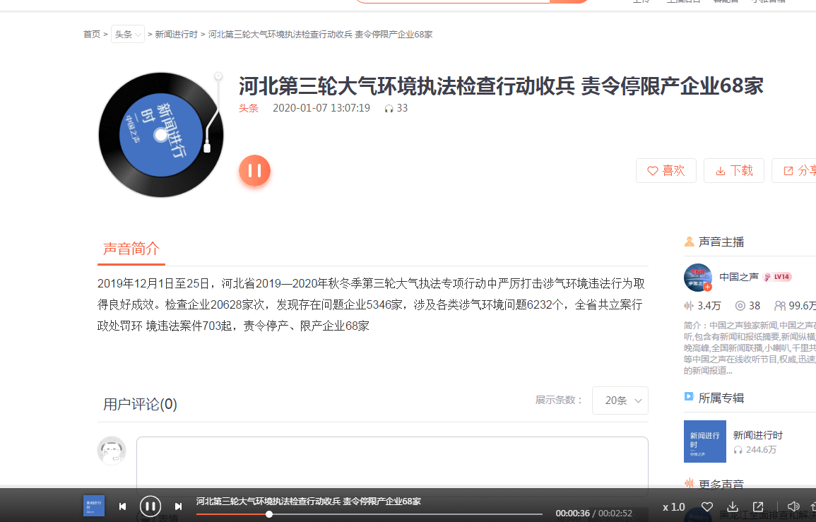 中国之声:河北第三轮大气环境执法检查行动收兵 责令停限产企业68家