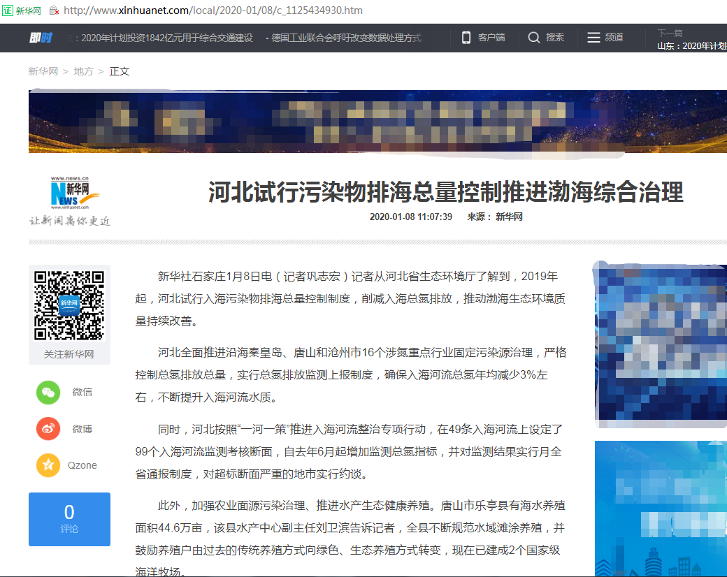 新华社石家庄1月8日电(记者巩志宏)记者从杏彩(中国)官方网站 了解到,2019年起,河北试行入海污染物排海总量控制制度,削减入海总氮排放,推动渤海生态环境质量持续改善。
