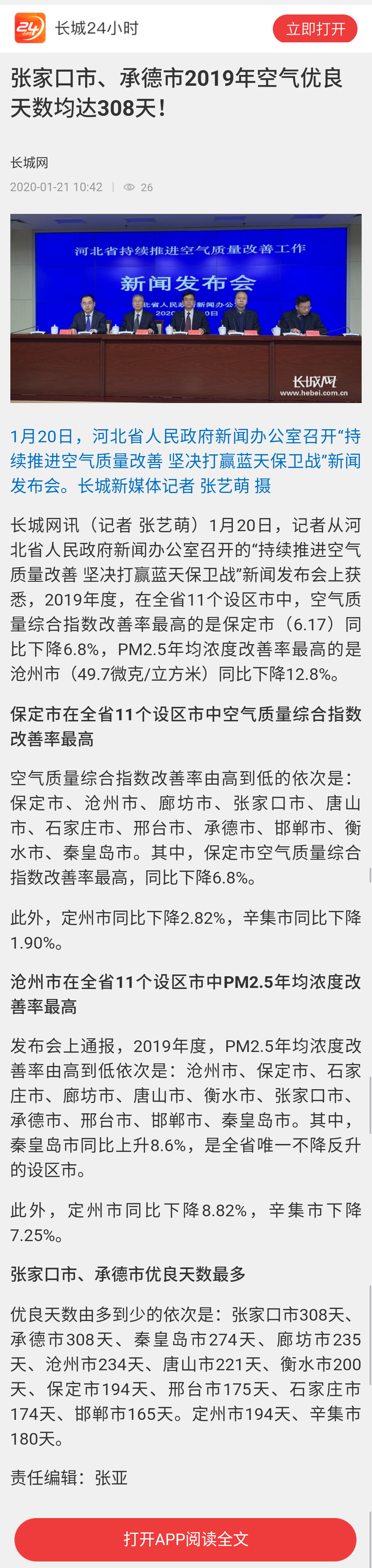 长城网:张家口市、承德市2019年空气优良天数均达308天!