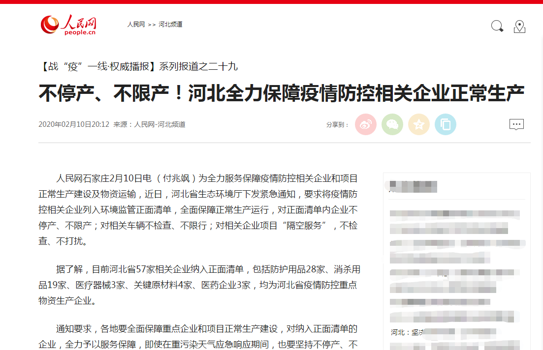 据了解,目前河北省57家相关企业纳入正面清单,包括防护用品28家、消杀用品19家、医疗器械3家、关键原材料4家、医药企业3家,均为河北省疫情防控重点物资生产企业。