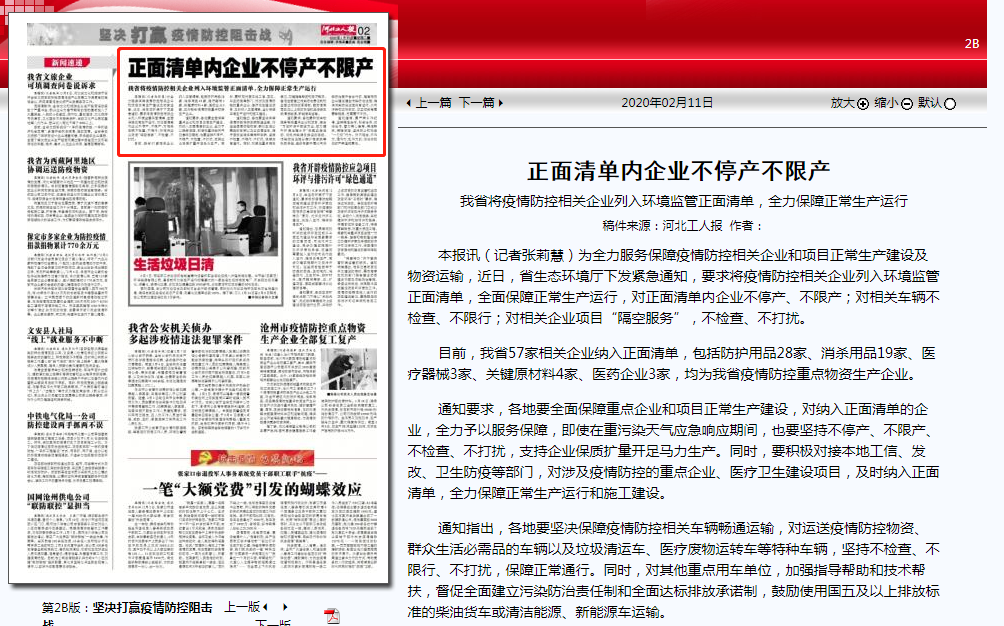 下发紧急通知,要求将疫情防控相关企业列入环境监管正面清单,全面保障正常生产运行,对正面清单内企业不停产、不限产;对相关车辆不检查、不限行;对相关企业项目“隔空服务”,不检查、不打扰。
