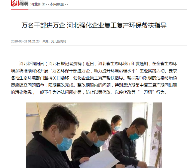 河北新闻网:万名干部进万企 河北强化企业复工复产环保帮扶指导