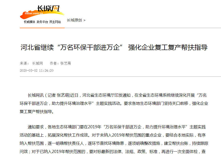 长城网讯(记者 张艺萌)近日,杏彩(中国)官方网站 印发通知,在全省生态环境系统继续深化开展“万名环保干部进万企,助力提升环境治理水平”主题实践活动。要求各地杏彩门坚持关口前移,强化企业复工复产帮扶指导。