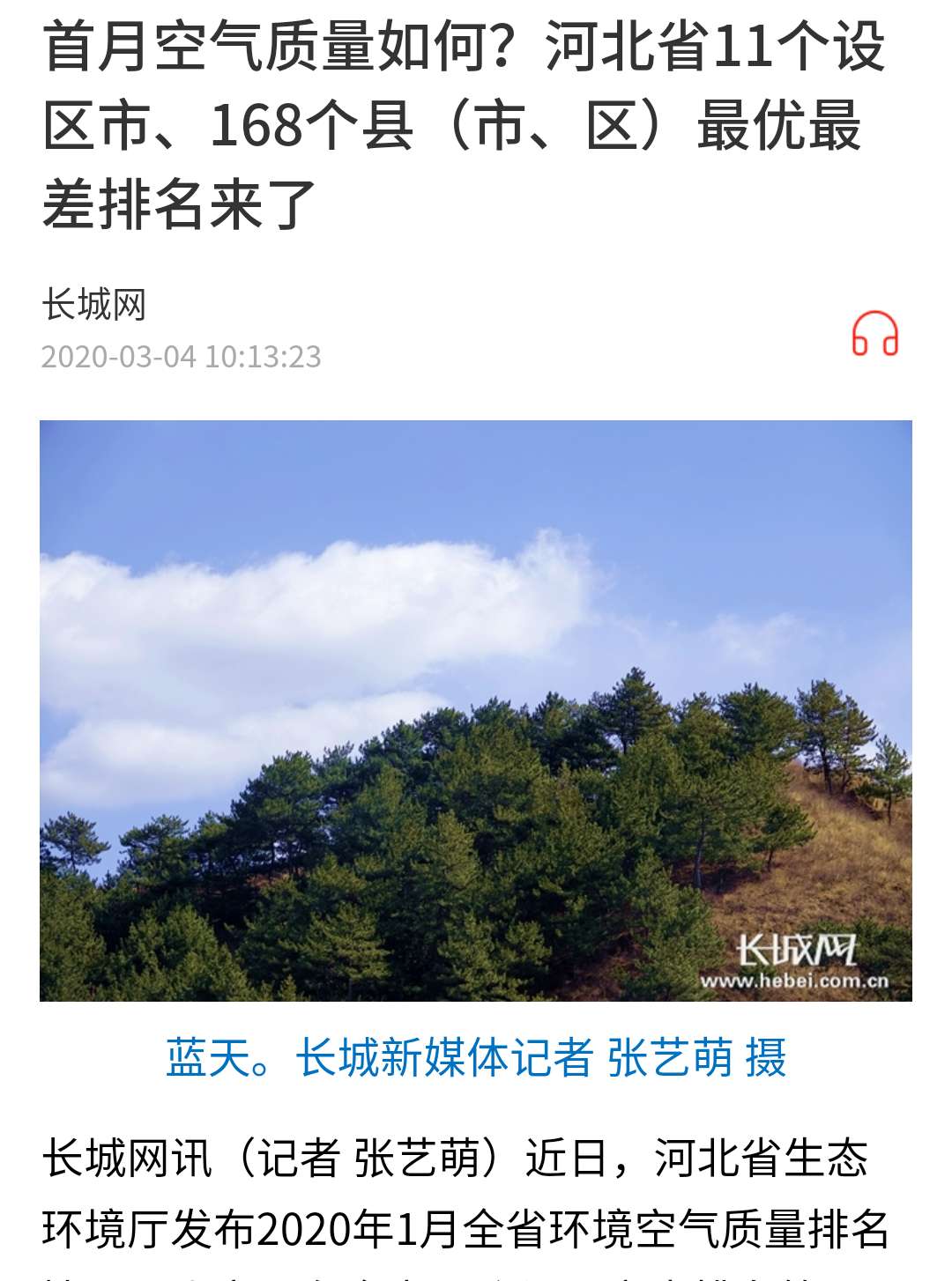 长城网:首月空气质量如何?河北省11个设区市、168个县(市、区)最优最差排名来了