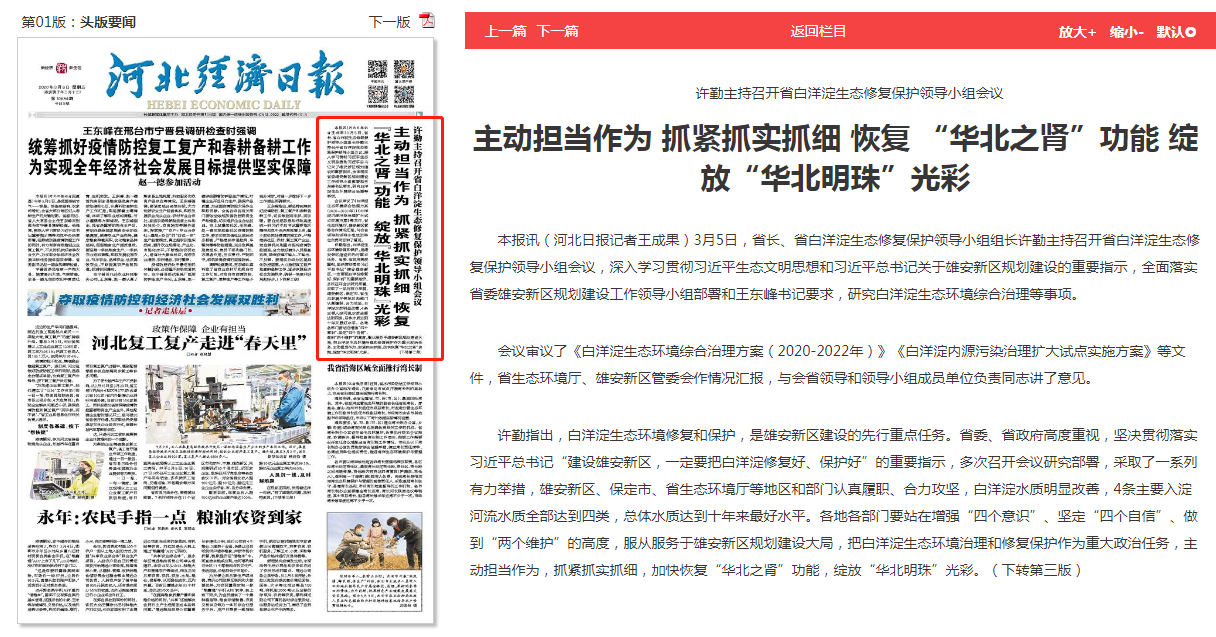 会议审议了《白洋淀生态环境综合治理方案(2020-2022年)》《白洋淀内源污染治理扩大试点实施方案》等文件,杏彩(中国)官方网站 、雄安新区管委会作情况汇报,与会省领导和领导小组成员单位负责同志讲了意见。