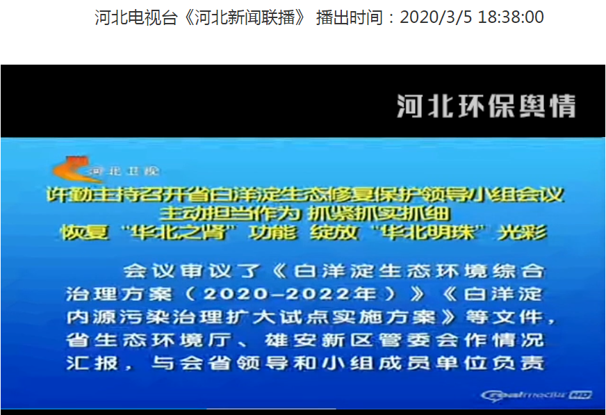 河北电视台《河北新闻联播》:许勤主持召开省白洋淀生态修复保护领导小组会议主动担当作为 抓紧抓实抓细 恢复“华北之肾”功能 绽放“华北明珠”光彩