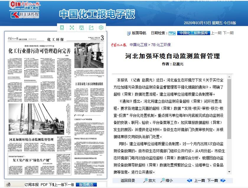 中国化工报:河北加强环境自动监测监督管理
