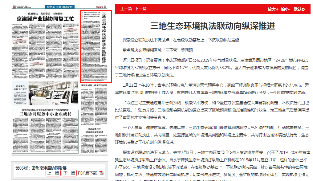 一个大屏幕,连接京津冀。去年以来,三地杏彩门像这样联防联控大气污染的机制、行动越来越多。三地积极开展联动执法,共同排查、处置跨区域的环境污染问题和环境违法案件,共同打击区域环境违法行为,生态环境执法联动工作机制向纵深推进。