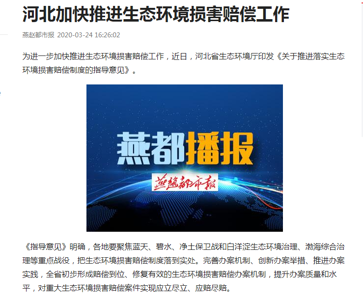 据介绍,2018年7月,河北印发《河北省生态环境损害赔偿制度改革实施方案》,成为全国较早开展生态环境损害赔偿制度改革的省份,逐步完善了生态环境损害赔偿案件调查、磋商、资金管理等系列制度,生态环境损害赔偿制度改革各项工作取得积极进展。2019年,全省共启动生态环境损害赔偿案件40件、办结12件、赔偿金额3035万元,办案数量和赔偿金额较2018年大幅增长;承德市外来非法倾倒危险废物生态环境损害赔偿案入选全国生态损害赔偿磋商典型案例。
