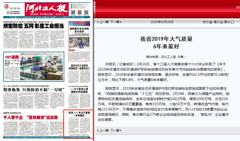 报告显示,2019年全省生态环境保护9项约束性指标全部完成国家下达的年度任务,7项指标提前完成我省“十三五”规划目标。2019年,我省大力调整产业结构、能源结构和交通运输结构,全年压减退出钢铁产能1402万吨、煤炭1006万吨、水泥334万吨、平板玻璃660万重量箱、焦炭319万吨、火电50万千瓦;新增改造气代煤、电代煤223.96万户,不具备改造条件的地区实行洁净煤替代;列入计划的18家重污染企业全部退城搬迁,钢铁、焦化等行业279家企业完成超低排放改造,“散乱污”企业基本动态清零。