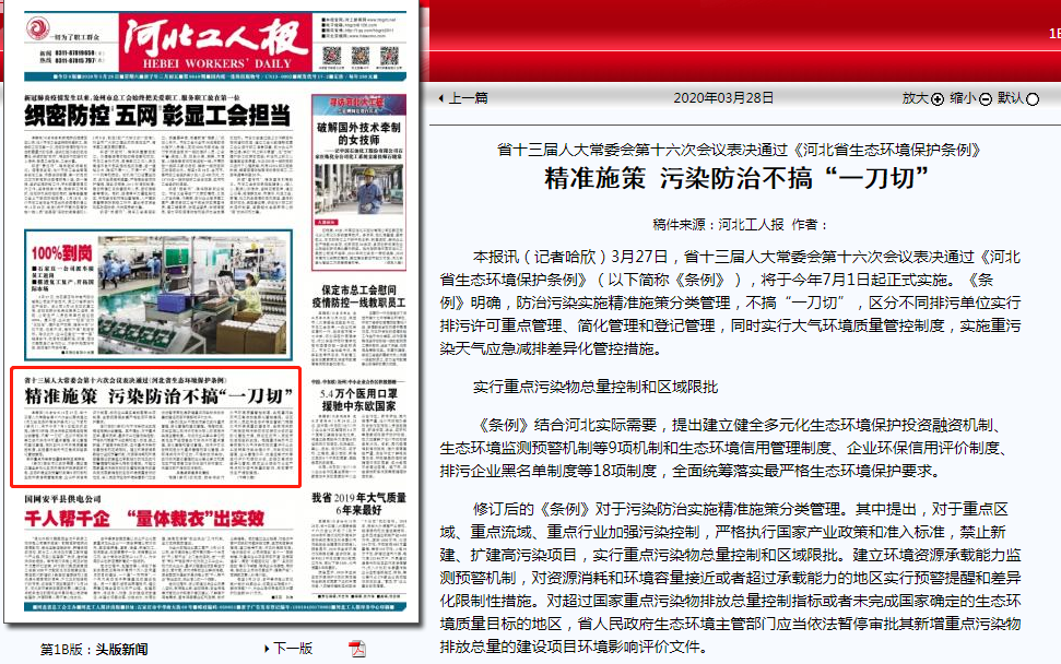 河北工人报:精准施策 污染防治不搞“一刀切”