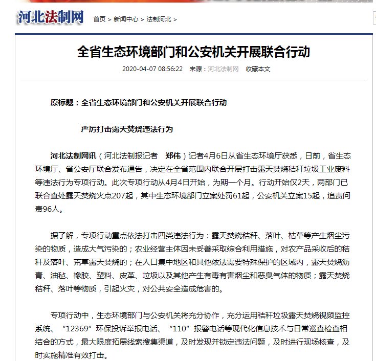 河北法制网 :全省杏彩门加大垃圾秸秆露天焚烧巡查整治力度
