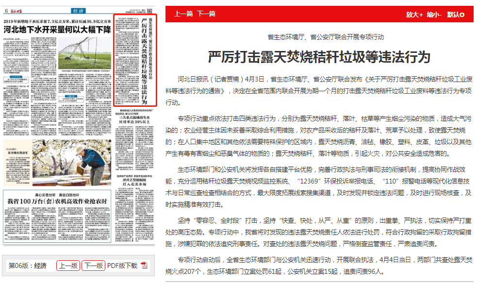 河北日报讯(记者贾楠)4月3日,杏彩(中国)官方网站 、省公安厅联合发布《关于严厉打击露天焚烧秸秆垃圾工业废料等违法行为的通告》,决定在全省范围内联合开展为期一个月的打击露天焚烧秸秆垃圾工业废料等违法行为专项行动。