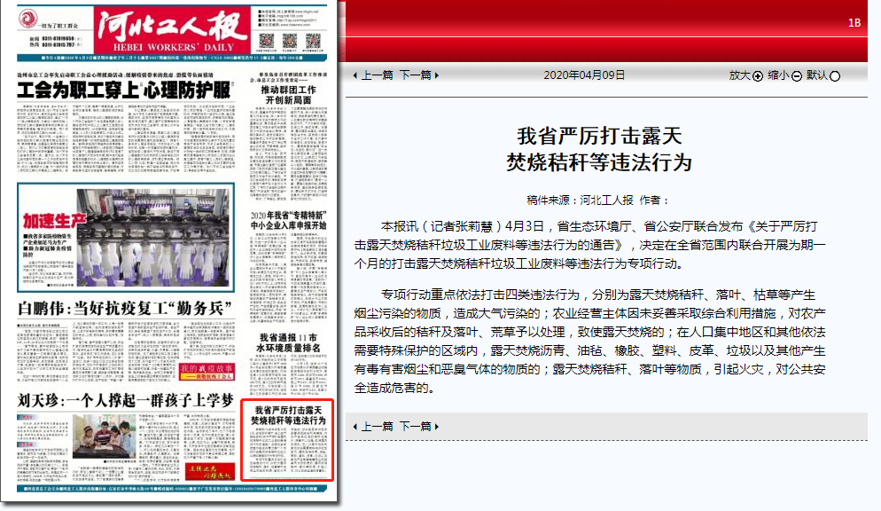 、省公安厅联合发布《关于严厉打击露天焚烧秸秆垃圾工业废料等违法行为的通告》,决定在全省范围内联合开展为期一个月的打击露天焚烧秸秆垃圾工业废料等违法行为专项行动。