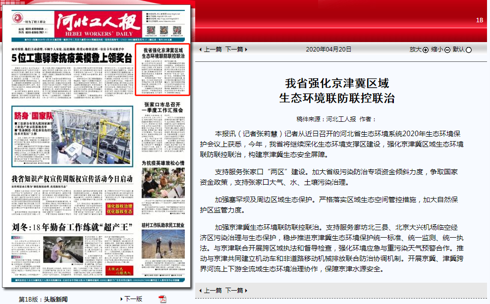 本报讯(记者张莉慧)记者从近日召开的河北省生态环境系统2020年生态环境保护会议上获悉,今年,我省将继续深化生态环境支撑区建设,强化京津冀区域生态环境联防联控联治,构建京津冀生态安全屏障。