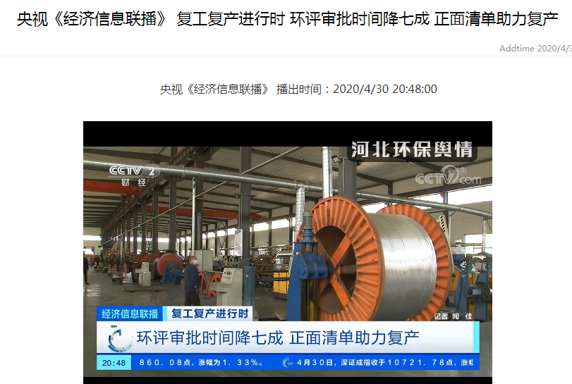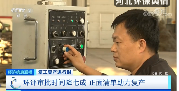 央视《经济信息联播》:复工复产进行时 环评审批时间降七成 正面清单助力复产