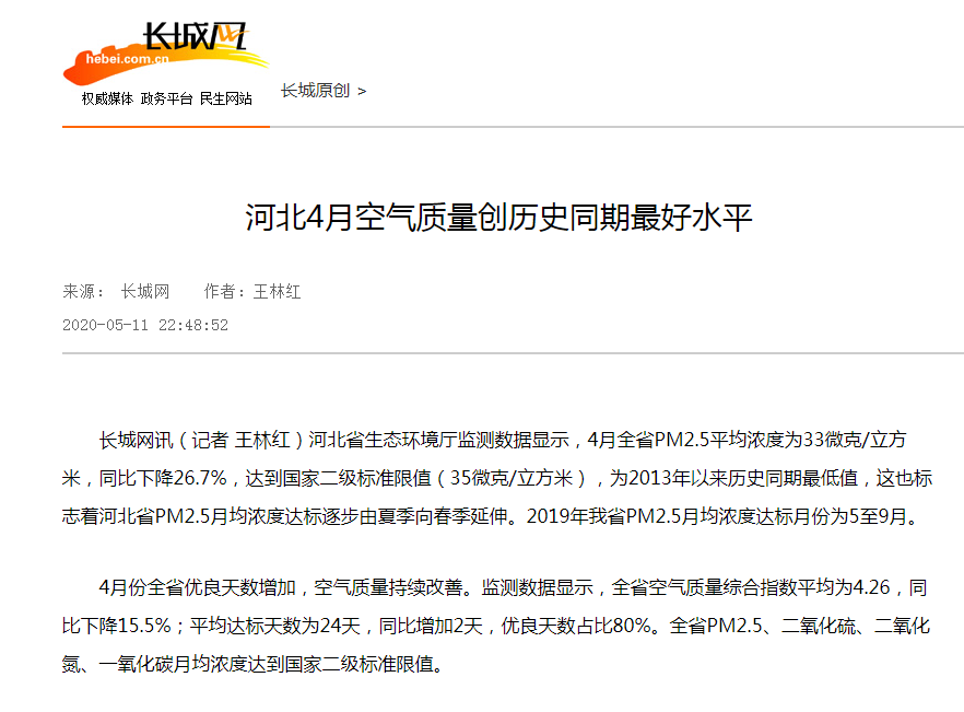 长城网讯(记者 王林红)杏彩(中国)官方网站 监测数据显示,4月全省PM2.5平均浓度为33微克/立方米,同比下降26.7%,达到国家二级标准限值(35微克/立方米),为2013年以来历史同期最低值,这也标志着河北省PM2.5月均浓度达标逐步由夏季向春季延伸。2019年我省PM2.5月均浓度达标月份为5至9月。
