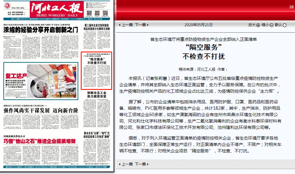 据了解,公布的企业清单中包括消杀用品、医用防护服、口罩、医药品和医药设备、熔喷布、PVC医用手套等领域生产企业,共计182家,其中,生产消杀、防护用品等化工领域企业60多家,如生产溴氯海因的企业有定州市荣鼎水环境生化技术有限公司、河北利仕化学科技有限公司等,生产二氧化氯消毒剂的企业有衡水科泰环保材料有限公司、张家口市绿洁环保化工技术开发有限公司、沧州隆利达环保有限公司等。